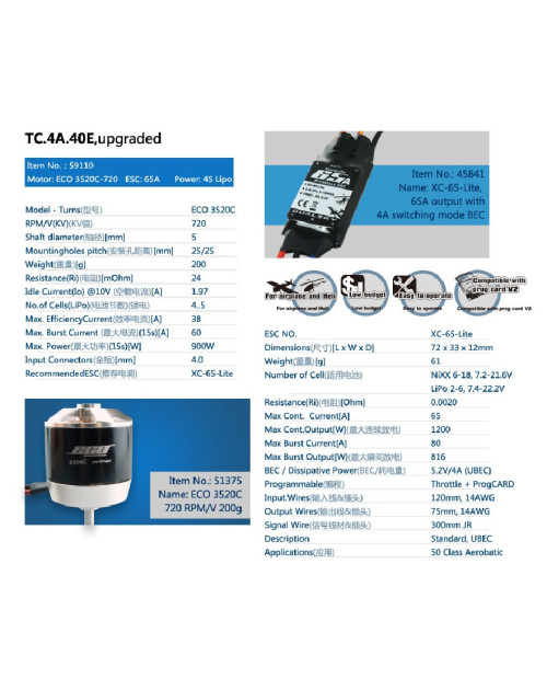 Dualsky ECO 3520C V2 KV820 motor + Dualsky XC-65-Lite ESC