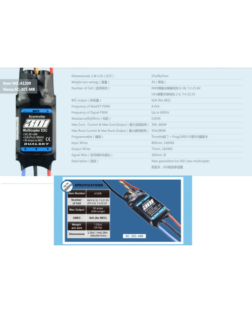 Tags: Dualsky XC-301-MR, ESC for Mutlicopter, Dualsky multirotor