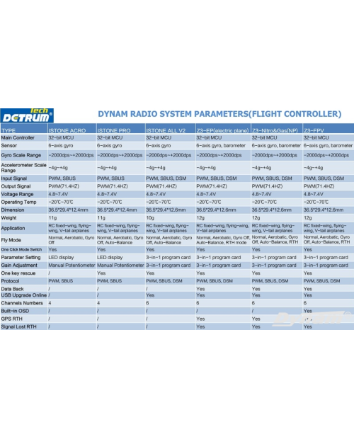 Z3 is compatible with ALL of major 2.4 G systems in the market and it supports DSM, S.BUS, PWM receivers. Pairing with a Detrum program card, the parameters can be easily programmed.